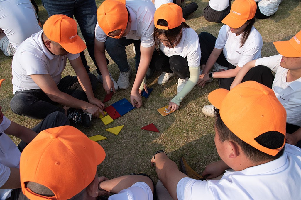 經過午間的休息和調整之后,大家在領隊的號召下繼續(xù)拓展活動,組員拼接塑料管片讓彈珠一路滾動直到落入前方指定紙杯中(珠行萬里),分組協(xié)作按照任務卡和圖形卡拼七巧板(戰(zhàn)國七雄),徒手翻越四米高墻(畢業(yè)墻),活動現(xiàn)場氣氛緊張,過程中大家雖屢屢受挫,卻空前團結,加油聲響亮,最終取得任務成功!